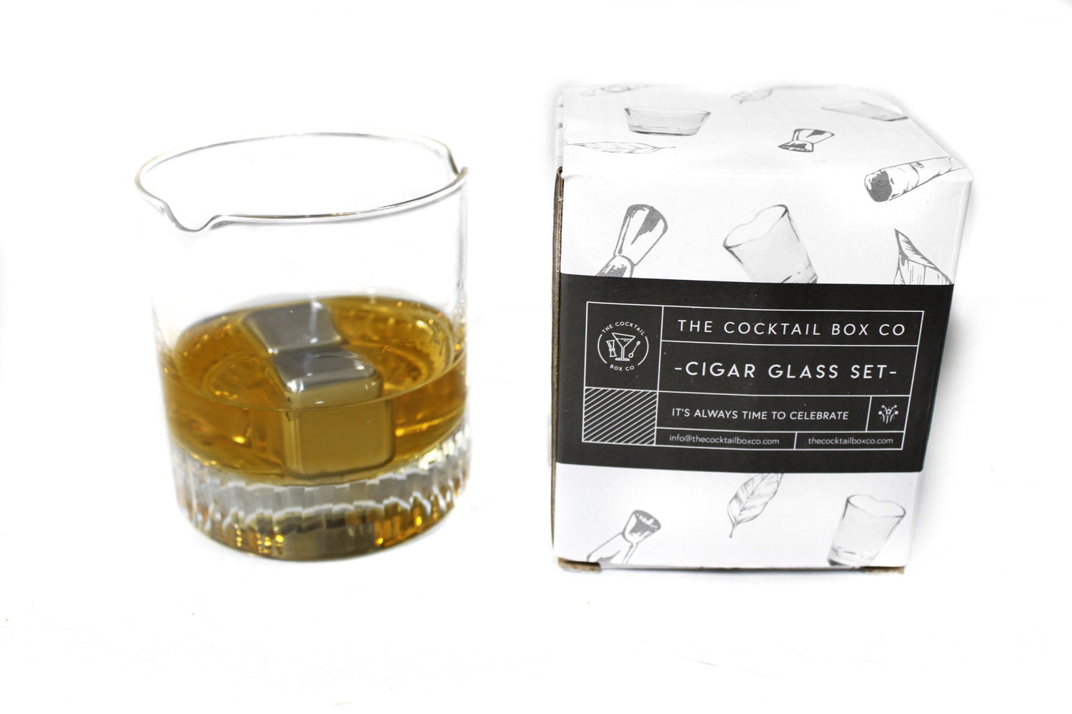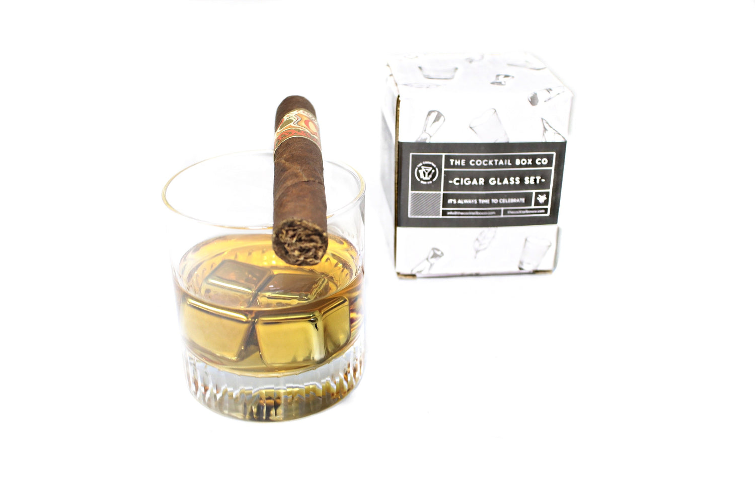 We introduce to you The Cocktail Box Co Whiskey Cigar Glass Set. A beautiful, well made whiskey glass with the convenience of a cigar rest.